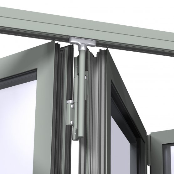 W progu systemu CF77 przemieszcza się wózek (mechanizm prowadnicy skrzydeł harmonijkowych), na który przekazywany jest ciężar ruchomych konstrukcji. W konstrukcjach harmonijkowych z systemów okiennych wózki przemieszczają się na prowadnicach dokręcanych od czoła do ramy.
