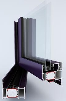 System TM 74 1.0 składa się z trójkomorowych profili aluminiowych z przekładką termiczną.